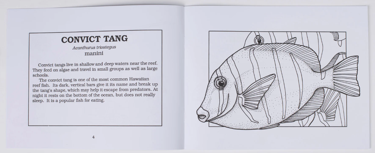 Discover the vibrant marine life of Hawaiʻi through this engaging coloring book. Featuring 15 stunning black-and-white illustrations of iconic island fishes—from the mesmerizing dragon eel to the striking convict tang and graceful bird wrasse—this book brings Hawaiian waters to life. Each page includes detailed information about the species, their habitats, and their common, scientific, and Hawaiian names. Perfect for artists of all ages who want to explore Hawaiʻi's rich aquatic heritage while creating their own colorful masterpiece.