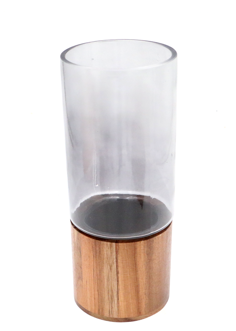 Elevate your home décor with our Hawaiian Koa Wood Cylinder Vase, where island craftsmanship meets modern elegance. This remarkable 2 piece features the coveted Koa wood, prized for its distinctive grain patterns and warm hues that embody Hawaii's natural splendor. The cylindrical design marries smoke grey glass with this premium hardwood, creating a statement piece that commands attention whether displaying fresh blooms or standing alone as sculptural art. Invite the luxurious spirit of the islands into your space with this versatile accent that transforms any room into a sophisticated sanctuary.