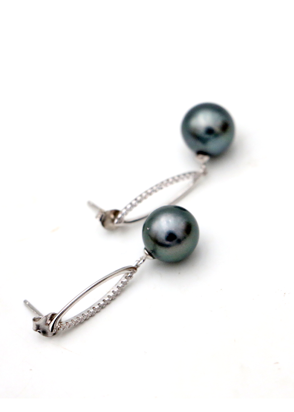 Tahitian pearls suspended with stainless steel decorative oval drop with CZ stones to create an effortless bridge between classic elegance and modern simplicity. Each lustrous black pearl showcases delicate iridescent shimmer that catches light without demanding it—the hallmark of refined jewelry. The minimalist hook design steps back gracefully, allowing the pearls' natural beauty to take center stage. Equally at home layered with everyday pieces or paired with evening wear, these earrings embody the kind of understated sophistication that elevates any moment. A timeless investment that speaks through presence rather than proclamation.