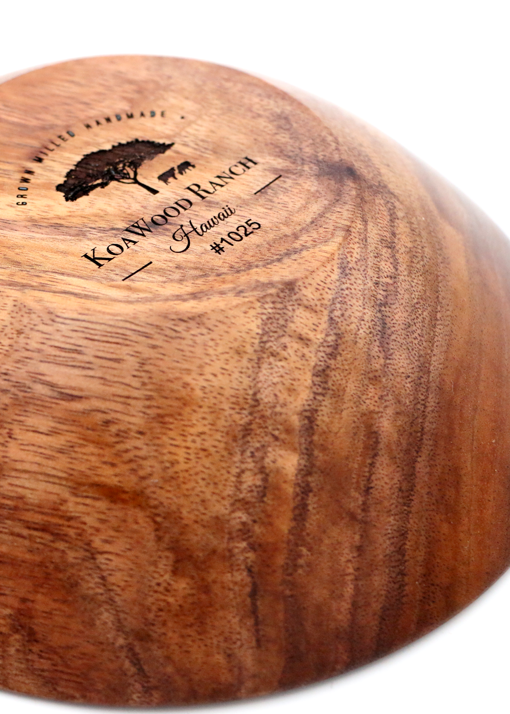 Local Big Island artist Erick Loos painstakingly turned this wood bowl from wood that was sustainably harvest at the KoaWood Ranch. The piece is finished with Danish oil and beeswax.