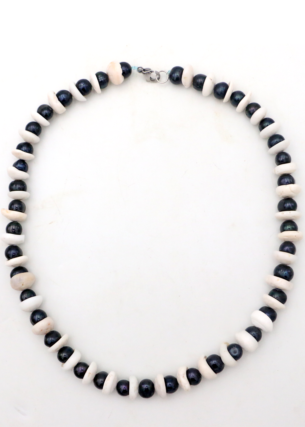 This Black Pearl and Puka Shell Lei Necklace is carefully handmade with handpicked puka shells from Hawaii. Unique and one of a kind, it enhances any resort wear ensemble with an authentic Hawaiian flair. A perfect addition to elevate your accessory collection with genuine island style.