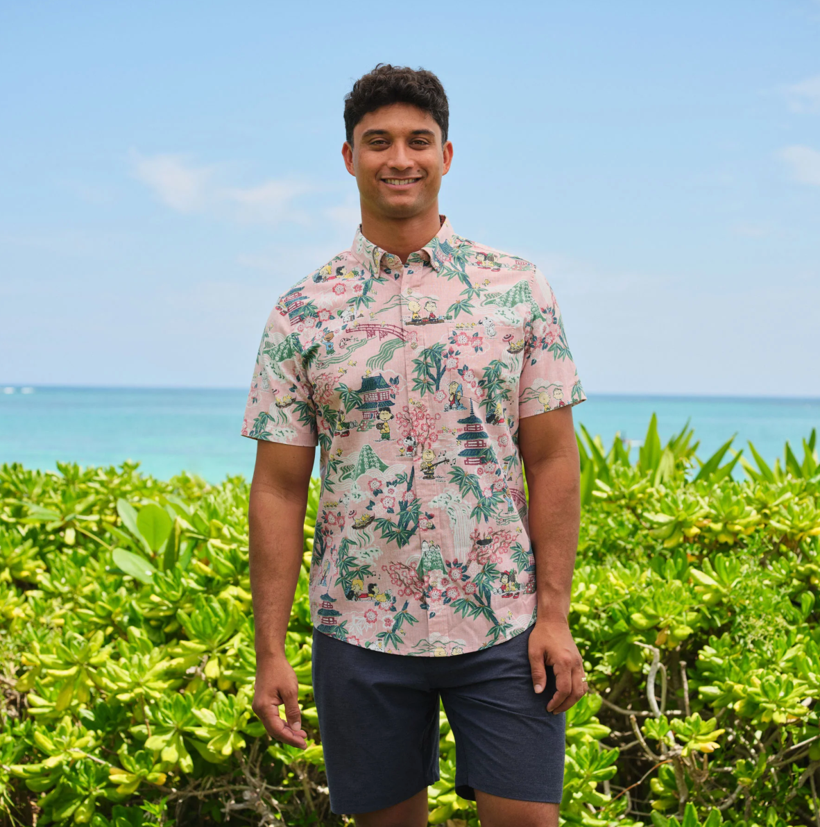 Peanuts in Japan Aloha Shirt in Pink by Reyn Spooner
