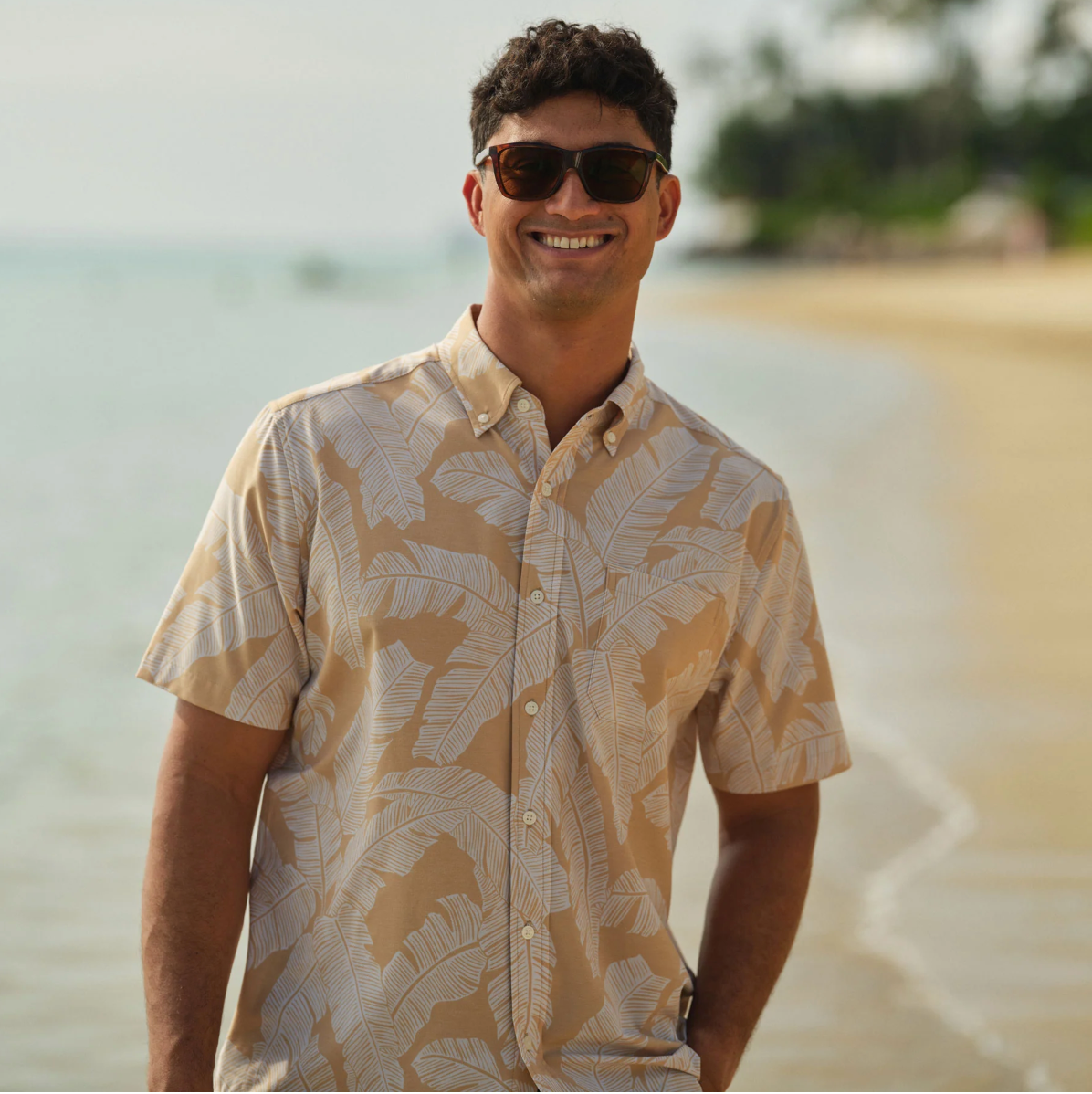 Tropical Shade Performance Aloha Shirt in Straw by Reyn Spooner