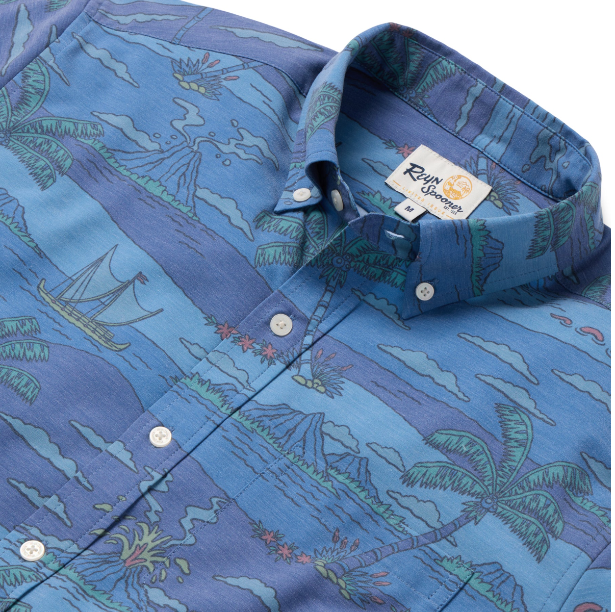 Volcano Palms Performance Aloha Shirt in Blue by Reyn Spooner