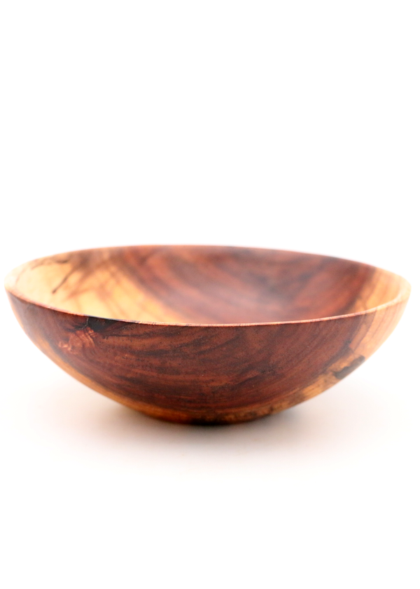 Local Big Island artist Erick Loos painstakingly turned this wood bowl from wood that was sustainably harvest at the KoaWood Ranch. The piece is finished with Danish oil and beeswax.