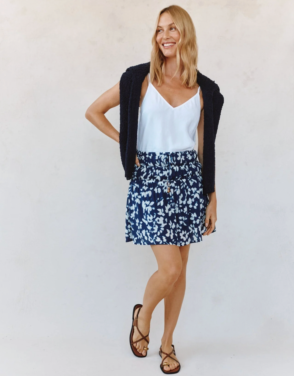 • モデルは身長5フィート9.5インチ、バスト34B、ウエスト24インチ、ヒップ35インチで、サイズはSです。