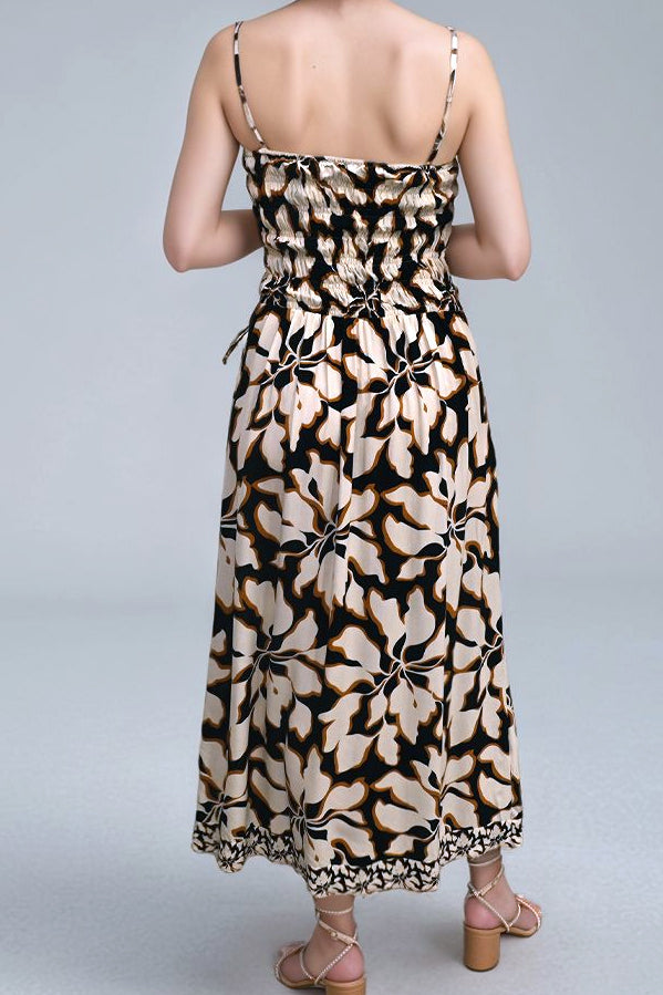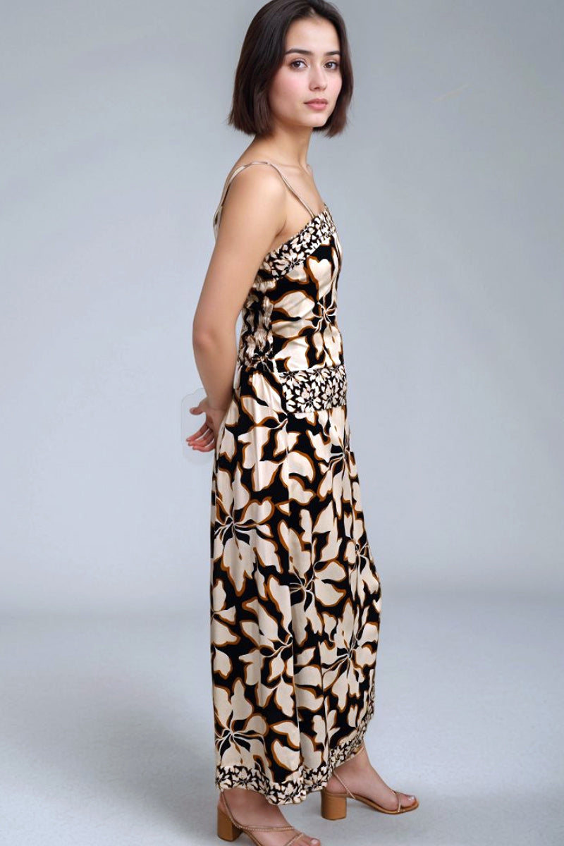 Val dit seizoen op met een levendige print die zelfvertrouwen uitstraalt! Onze Noelle Maxi Dress in Aloha Black heeft een opvallend zwart en off-white design dat zeker een statement maakt, waar je ook gaat. Met een diep uitgesneden V-hals, empire taille en zwoele zijsplitten is deze jurk perfect voor je volgende feestelijke uitstapje. Voeg een vleugje sprankeling toe met sierlijke gouden accessoires voor een verfijnde touch.