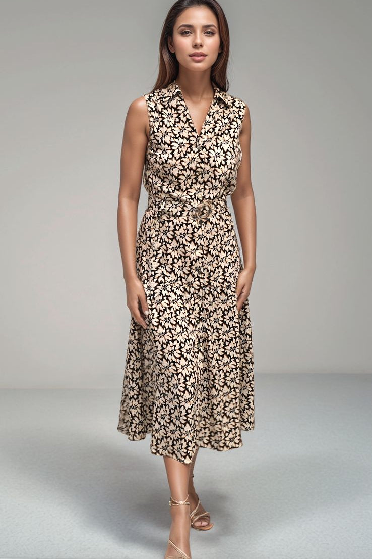 Elevate your wardrobe with the Amora Midi Shirtdress in Khush's Bloomcrest Black print, the epitome of versatile elegance. This refined button-down dress transitions effortlessly from day to evening with its classic collar and flowing midi silhouette. The included detachable belt cinches your waist for a flattering, personalized fit that commands attention. Perfect for any occasion, this timeless piece begs to be paired with bold earrings, a chic clutch, and stylish heels for an unforgettable ensemble that balances sophistication with effortless grace.